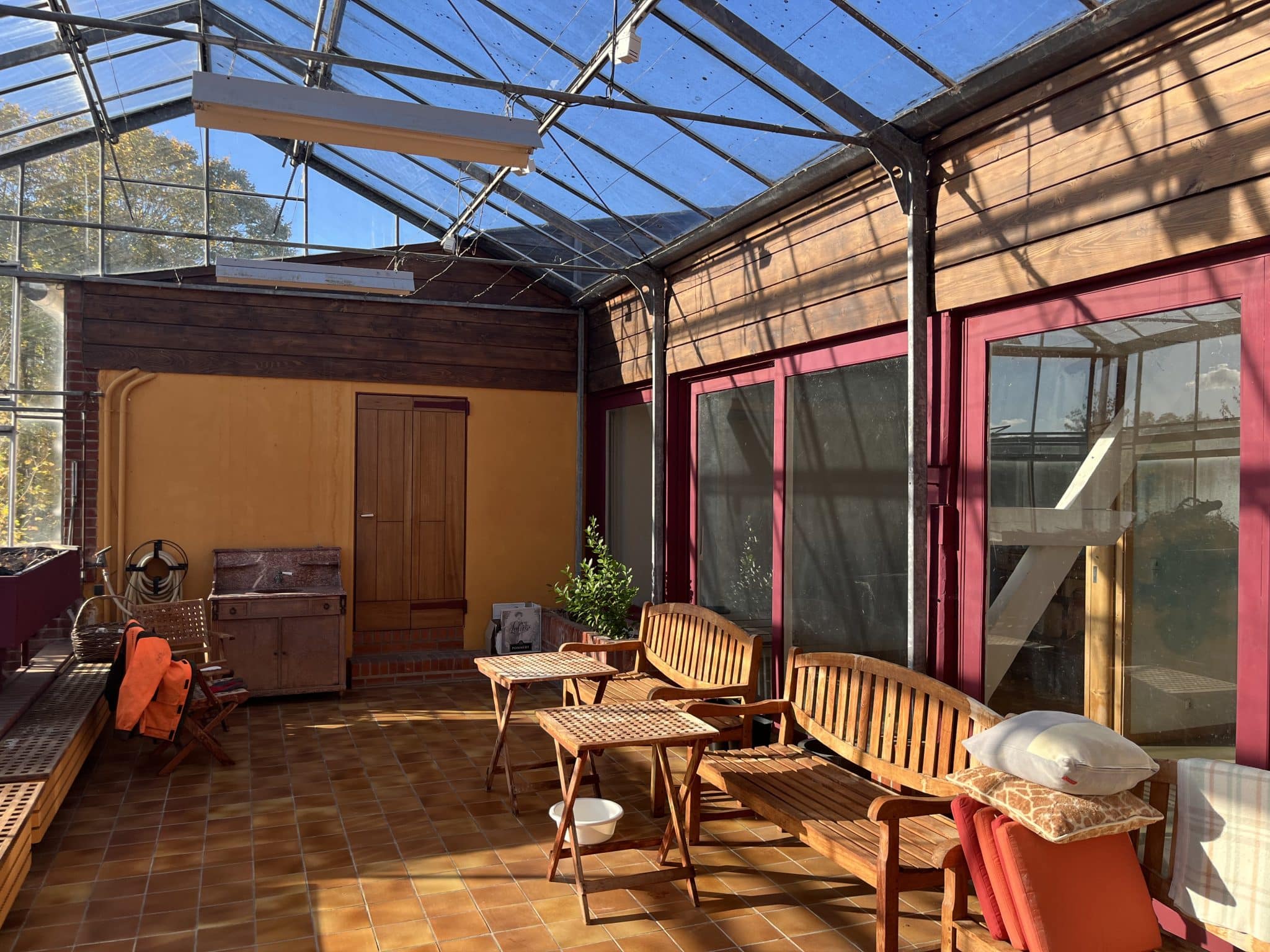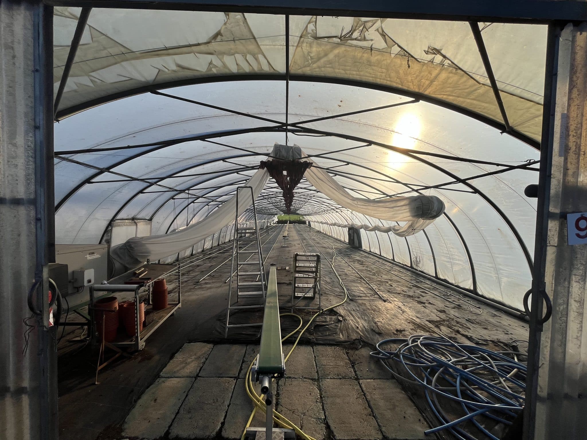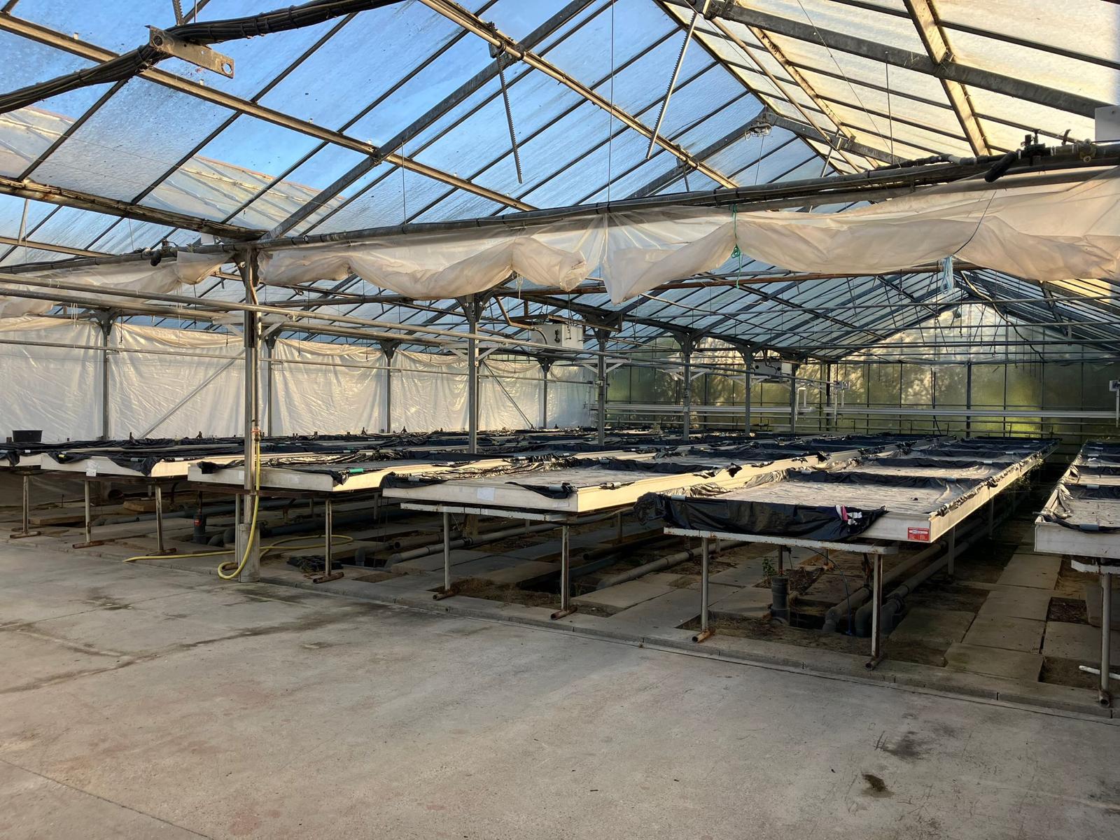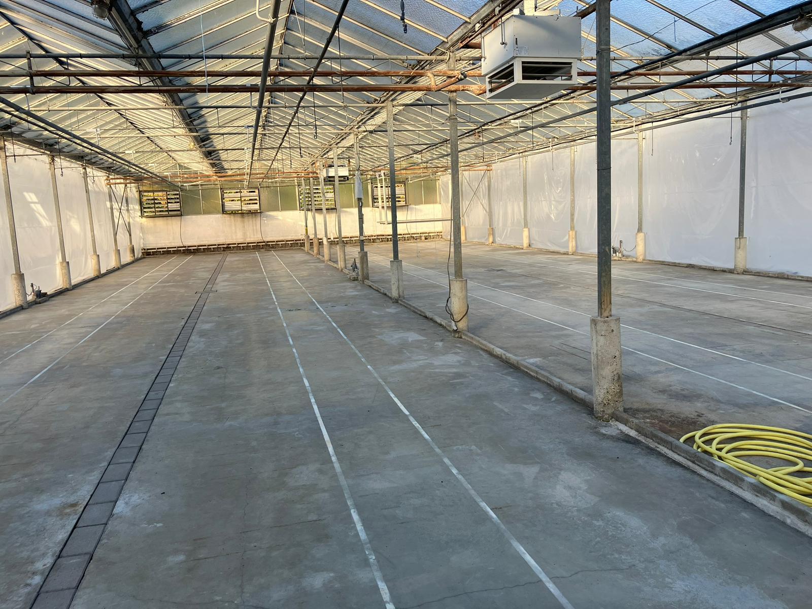 un bâtiment d’exploitation incluant : 6 000 m² de serres en verre, 17 serres tunnel
